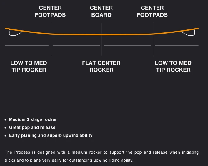 Für Ein und Aufsteiger ist das Process leicht zu kontrollieren! Jedoch wenn man das Board ordentlich fordert mit einem beherzten Kanteneinsatz zum Absprung werden auch Erfahrende Kiter mit dem Process viel Spass haben !